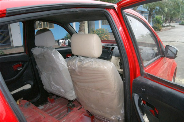 Chiếc xe thiết kế 4 chỗ nhưng mới được lắp 2 ghế trước, 2 ghế sau vẫn để trống, vì thiếu vốn nên Vinaxuki chưa thể nhập ghế và các nội thất khác về hoàn thiện.