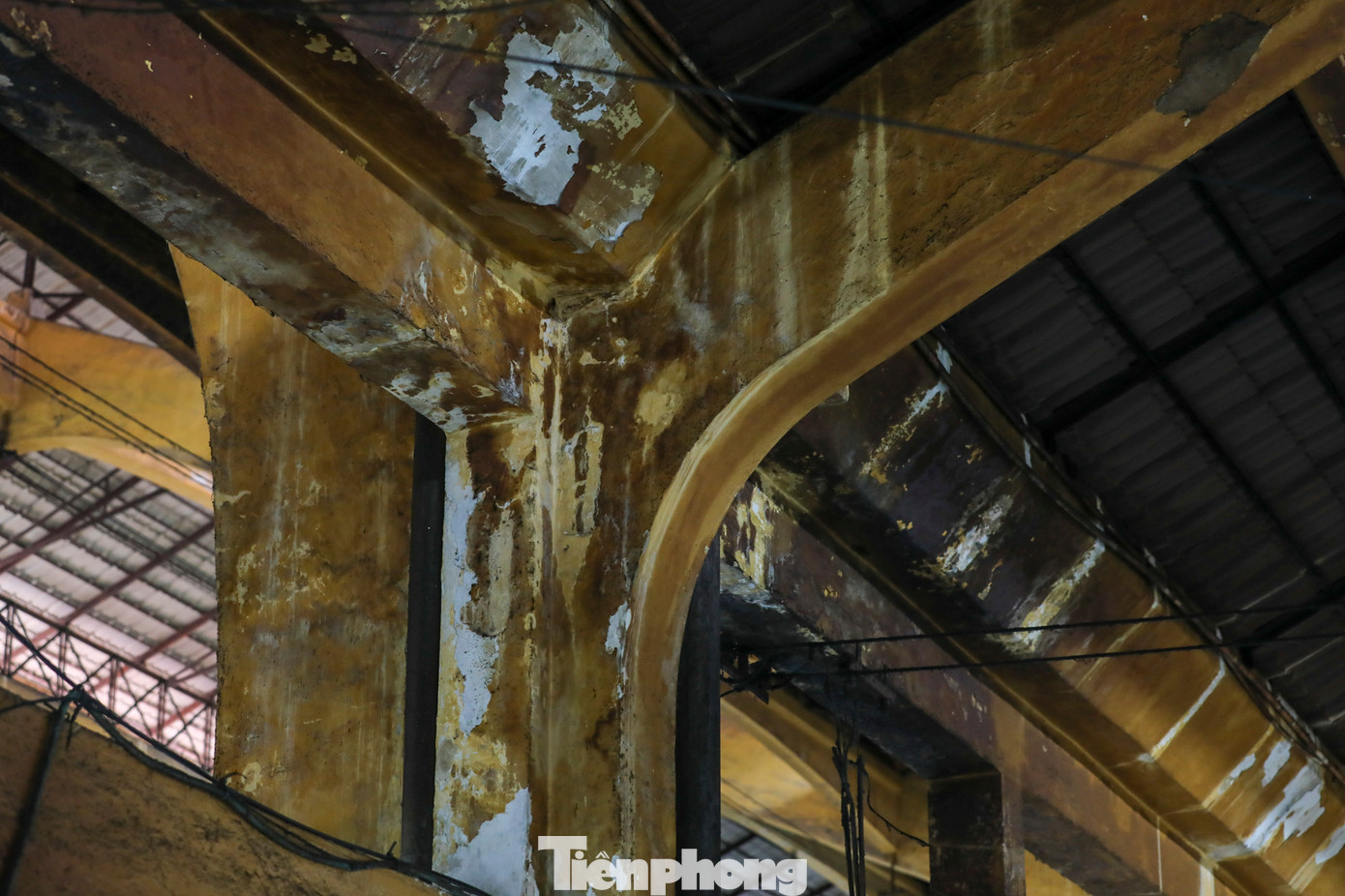 | Phần mái của chợ Bến Thành được lợp bằng tôn, bắt đầu xuất hiện nhiều chỗ hoen gỉ, nóng bức khi trời nắng. |