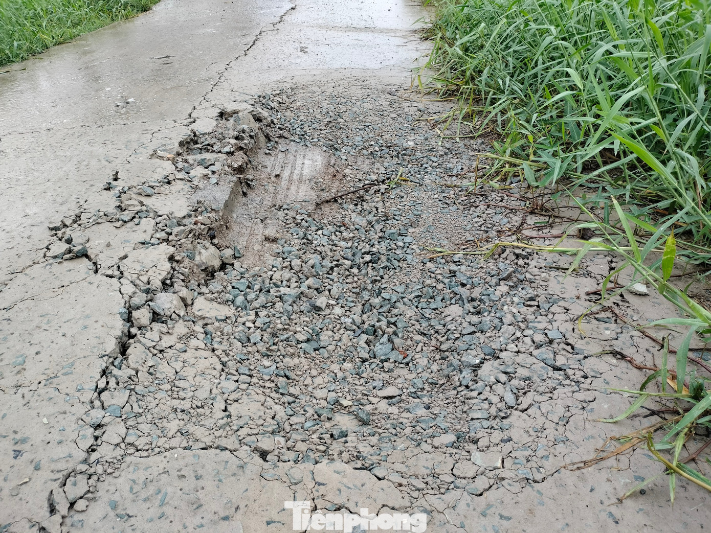 | Con đường dẫn vào Trung tâm có dấu hiệu xuống cấp, vết nứt nằm giữa đường. |