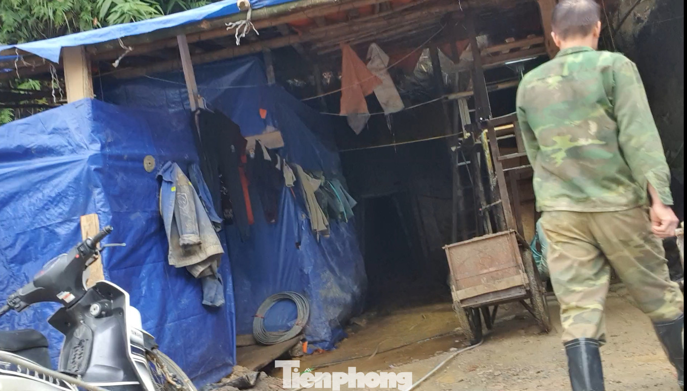 Ở khu vực khai thác do ông B (một bường vàng ở đây) cai quản gồm một đường lò chính và nhiều lán trại gá tạm vào vách núi.