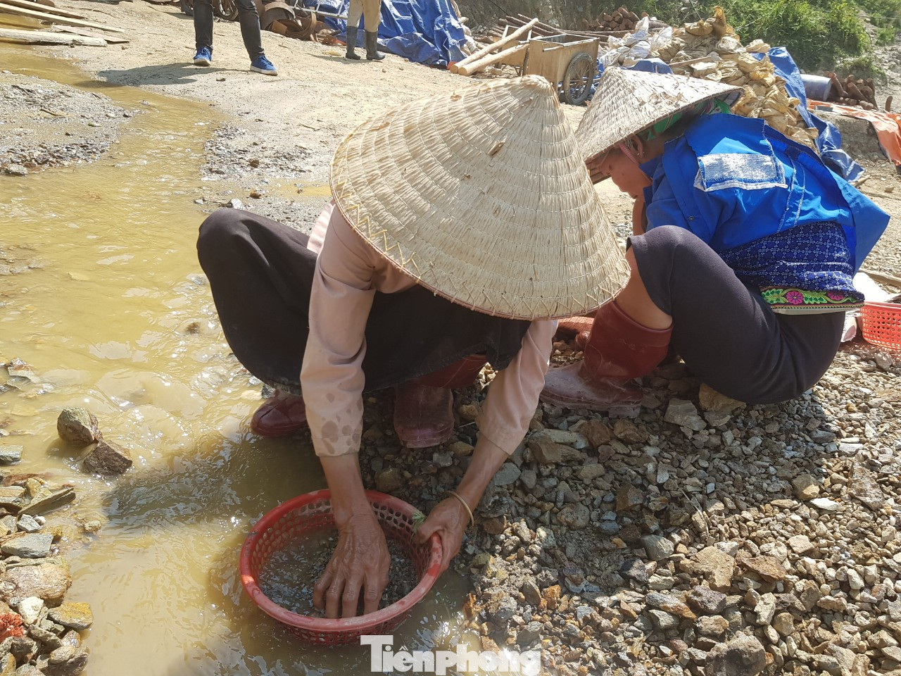 Những người dân đãi vàng với dụng cụ thô sơ.