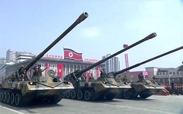 Đội hình pháo tự hành 170 mm của lực lượng pháo binh Triều Tiên.