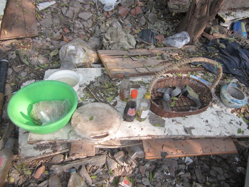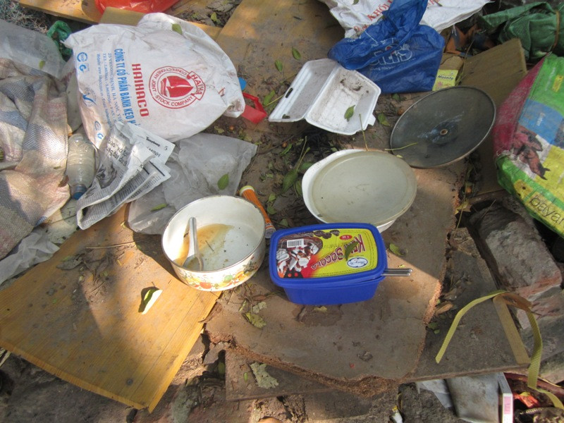 Đoạn đường hướng từ Lạc Long Quân ra Cầu Giấy, phía trước là sông Tô Lịch, được họ chọn làm nơi ở tạm bợ. Tất cả đồ đạc họ sử dụng đều đã cũ nát.