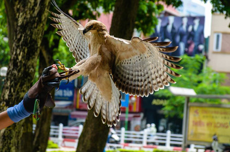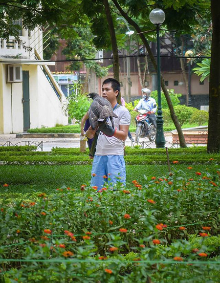 Thời gian vừa qua, nhiều người có dịp đi qua vườn hoa Lý Tự Trọng (quận Hoàn Kiếm, Hà Nội) chứng kiến cảnh huấn luyện chim đại bàng khá thú vị. Theo chủ nhân, con chim này được mua từ Đà Lạt lúc mới 1 tháng tuổi.