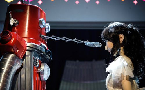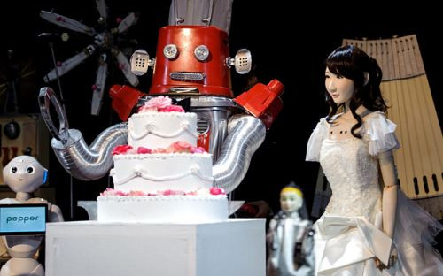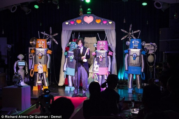 Đám cưới độc đáo này là “sản phẩm” của Maywa Denki, một đơn vị tiên phong về nghệ thuật công nghệ. Với ý tưởng từ việc Nhật Bản là quốc gia nổi tiếng về công nghệ rRobot, kết hợp với sự ưa chuộng đặc biệt của người dân xứ mặt trời mọc với các lễ cưới kiểu Tây phương, Maywa Denki đã đem đến một sự ngạc nhiên thú vị cho mọi người khi tổ chức buổi lễ kết hôn cho hai người máy.