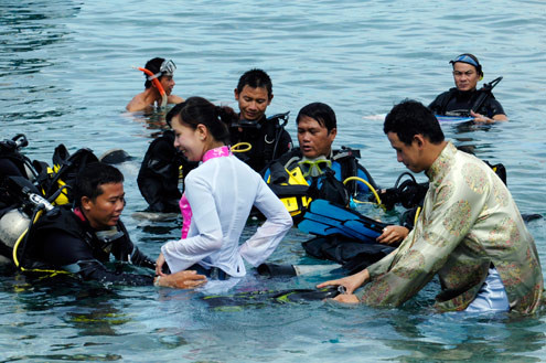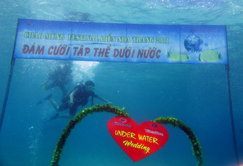 > Khánh Hòa: Đám cưới tập thể dưới nước