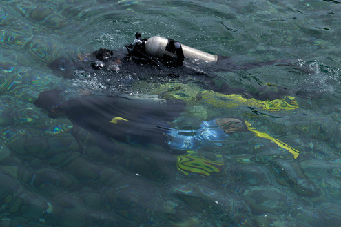 Đi cùng đoàn có đội thợ lặn được trang bị máy ảnh chuyên dụng chụp dưới nước.