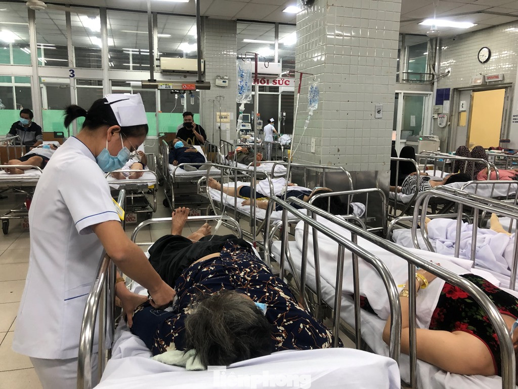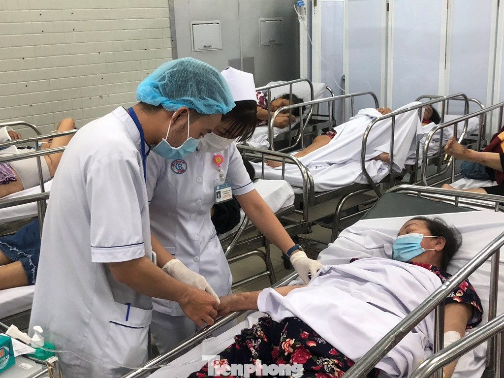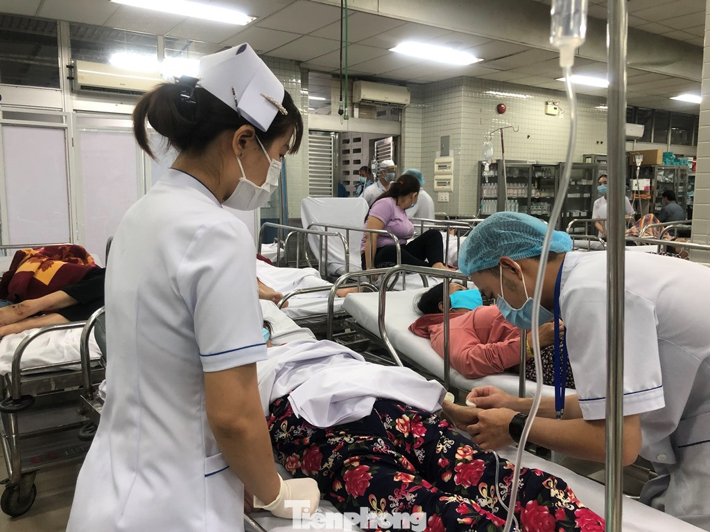 Phòng bệnh rộng gần 200 mét chật kín bệnh nhân nhập viện trong đêm.