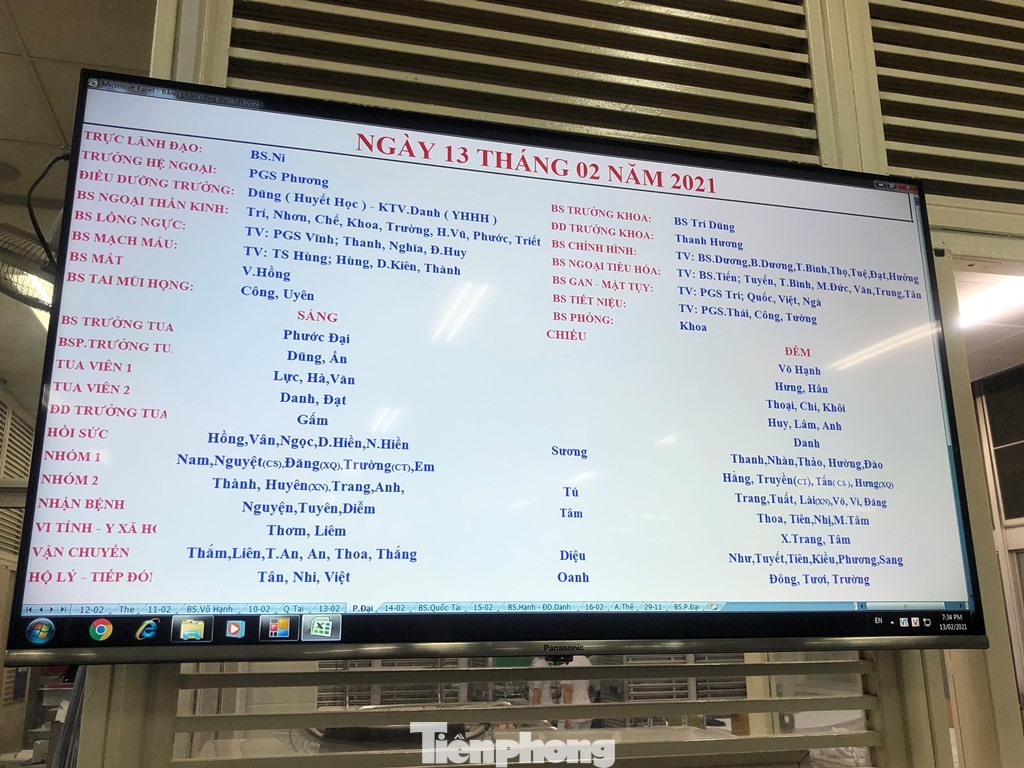 Bảng trực ca đêm tại khoa Cấp cứu Bệnh viện Chợ Rẫy ngày 13/2. “Chúng tôi luôn đặt tính mạng bệnh nhân lên hàng đầu nên cố gắng điều trị nhanh chóng hiệu quả và an toàn cho người bệnh. Cũng vì thế áp lực của y tá bác sĩ rất lớn” – BS Võ Hạnh, người có 6 năm trực Tết tại khoa Cấp cứu Bệnh viện Chợ Rẫy chia sẻ.
