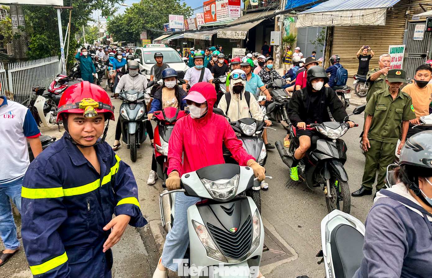 | Vụ việc khiến tuyến đường Bình Qưới bị ách tắc. Các lực lượng chức năng phải rất vất vả điều phối để tránh tình trạng tập trung đông người gây cản trở công tác cứu hộ. |