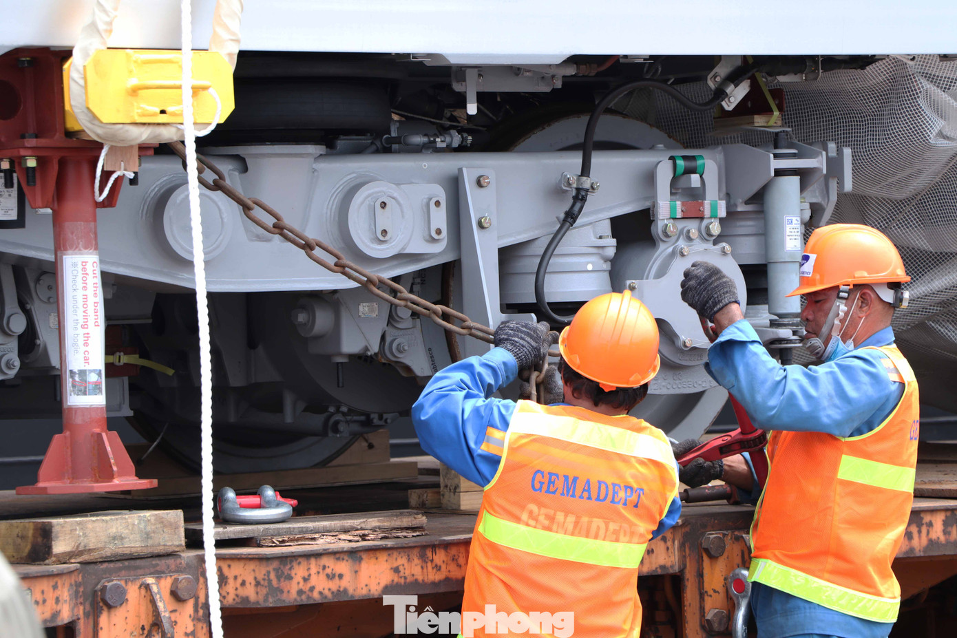 Việc hạ thủy các toa tàu được thực hiện hết sức kỹ lưỡng để đảm bảo an toàn kỹ thuật.
