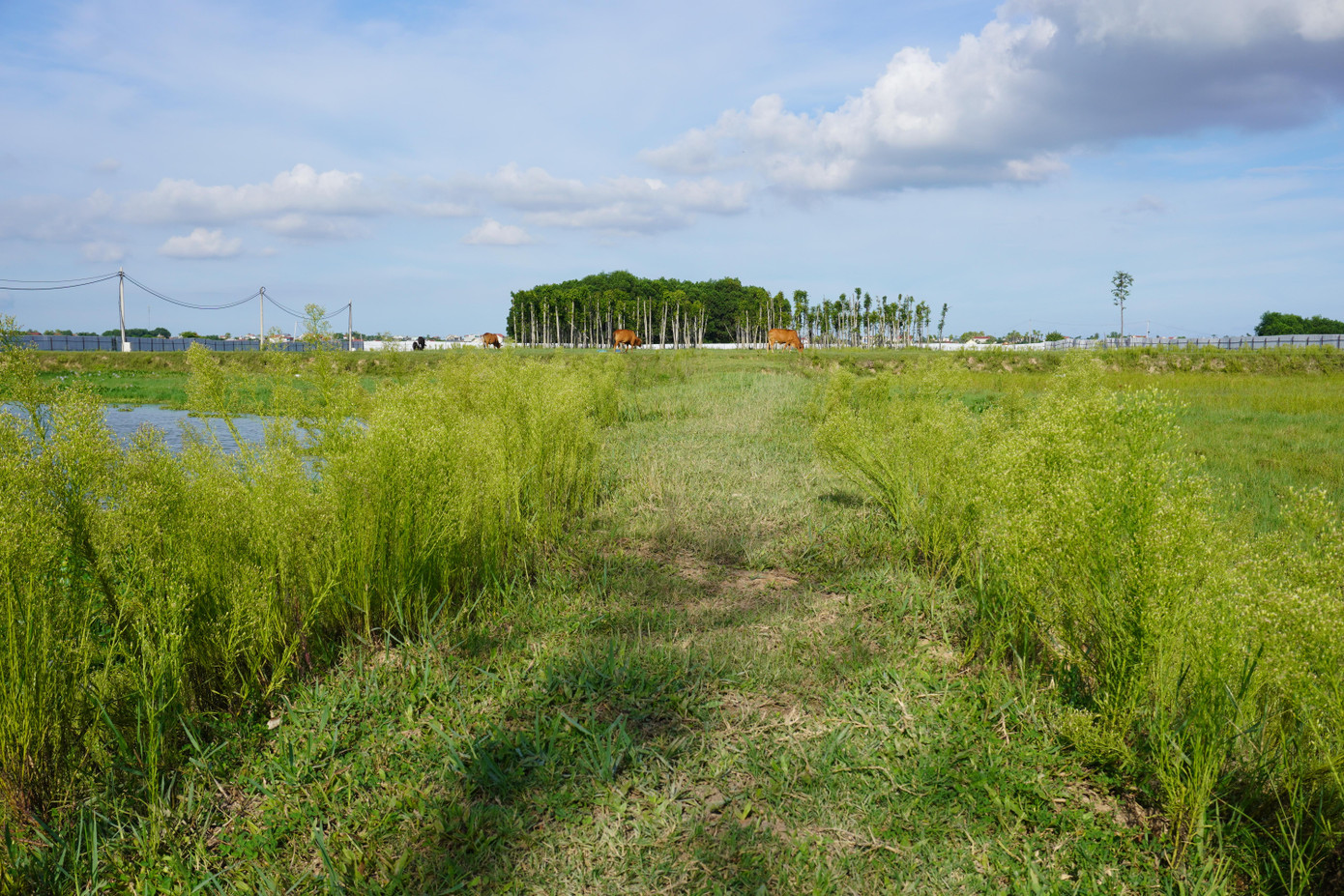 Ghi nhận tại hiện trường, một số hạng mục đã được xây dựng như: cột bê tông, nhà bảo vệ, hệ thống trạm điện, cột điện, sắt thép bị hoen gỉ... Người dân tận dụng diện tích bỏ hoang, cỏ mọc để chăn thả trâu bò, gia cầm.