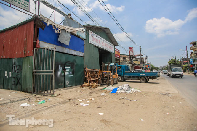 Dọc 2 bên đường rất nhiều nhà xưởng bằng tôn mọc lên tiềm ẩn nguy cơ cháy nổ.