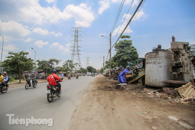 Một số khu tập kết rác lớn, phế liệu ngay cạnh mặt đường Tam Trinh.