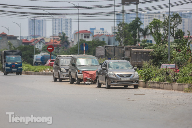 Nhiều xe ô tô còn đỗ xe ngay dưới lòng đường Tam Trinh.