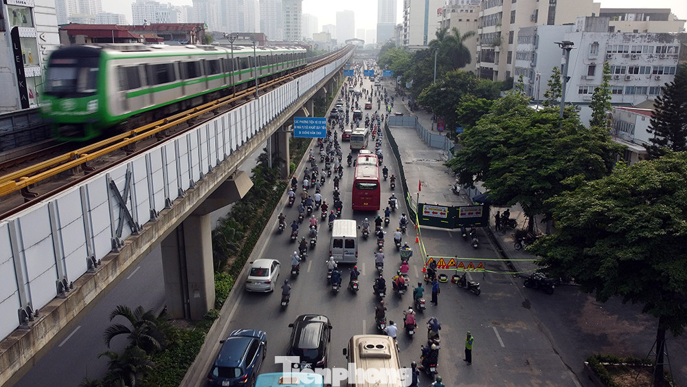 Sáng đầu tuần tại khu vực dựng rào chắn trên đường Nguyễn Trãi - Nguyễn Xiển không xảy ra cảnh tượng ùn tắc.