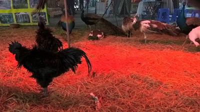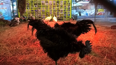 Tại một hội chợ phục vụ Tết Bính Thân 2016 đang diễn ra ở Hà Nội, xuất hiện điểm trưng bày loại gà đen siêu độc.