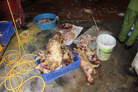 Tê tê bị giết thịt nằm la liệt dưới sàn.