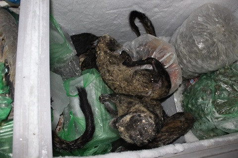 Chồn cầy đã bị giết thịt được cho vào hộp xốp ủ đá mang tới các nhà hàng.