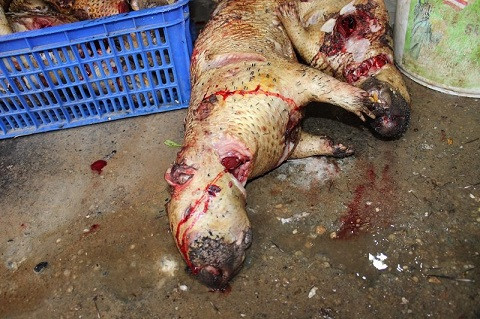 Không chỉ giết hại vô số cá thể động vật hoang dã cần được bảo vệ, những “đồ tể” còn bơm bột đá vào vào bụng các con vật tội nghiệp nhằm tăng cân nặng bán kiếm lời.