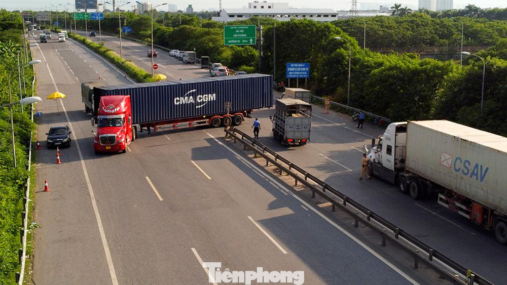 | Lớp thứ 2 các xe có thẻ nhận diện “luồng xanh” cho đi luôn. Đối với xe chở hàng thiết yếu, xe container quá cảnh yêu cầu phải có giấy xét nghiệm âm tính còn thời hạn, lái xe phải kê khai y tế và đo thân nhiệt”, ông Đào Việt Long, Phó giám đốc Sở GTVT Hà Nội cho hay. |