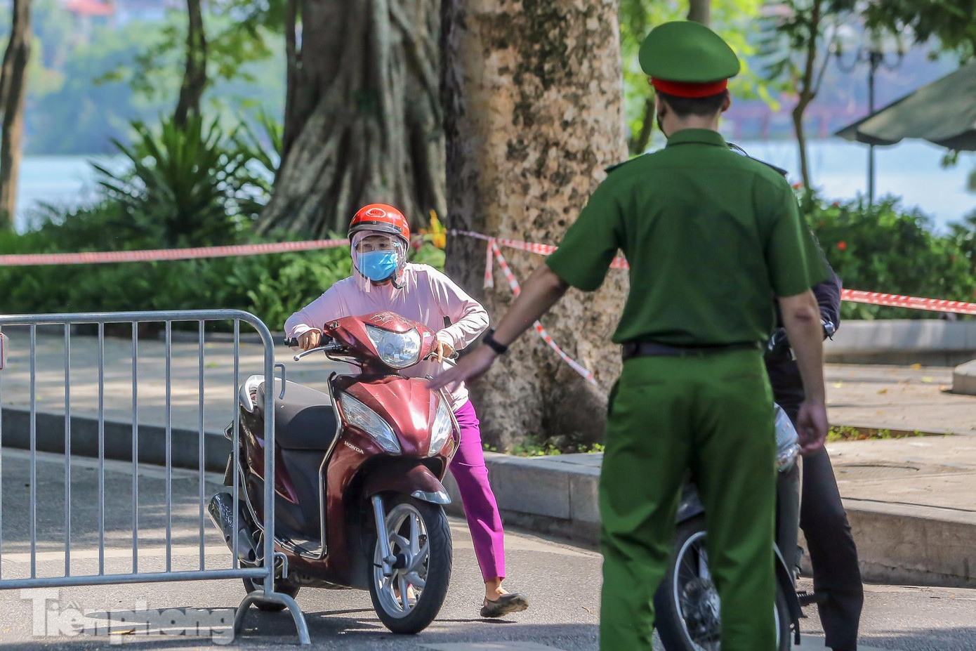 | Một chốt kiểm tra khác đầu phố Quán Thánh thuộc phường Quán Thánh (quận Ba Đình, Hà Nội) dựng lên để kiểm tra người đi đường. |