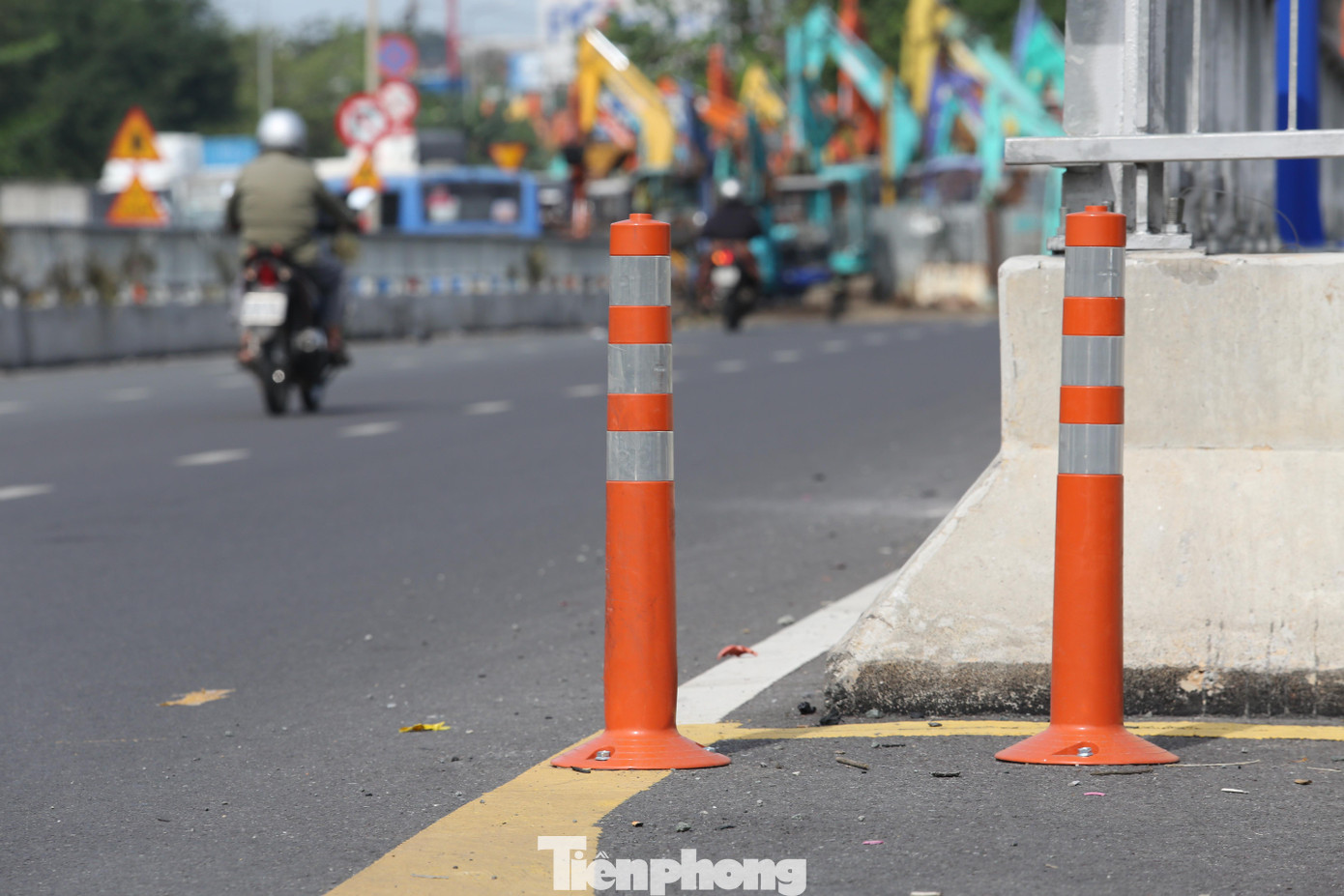 | Các cọc tiêu phản quang để cảnh báo trên mặt đường, cạnh đoạn hầm hở đã được lắp đặt. |