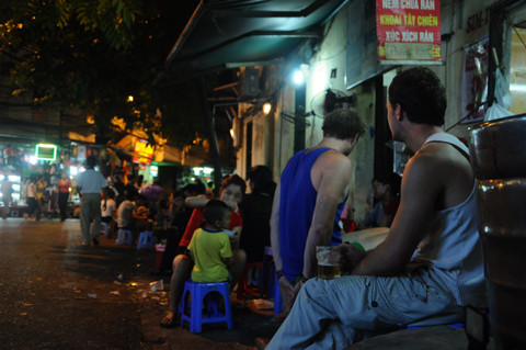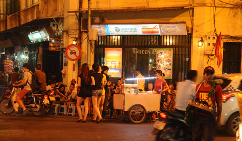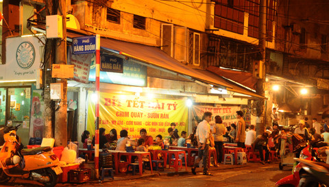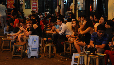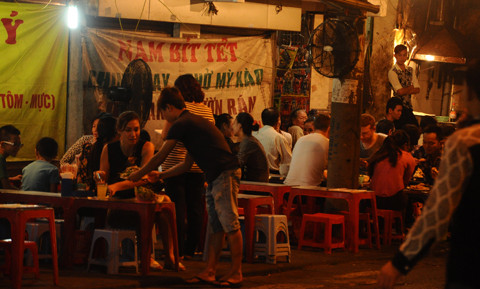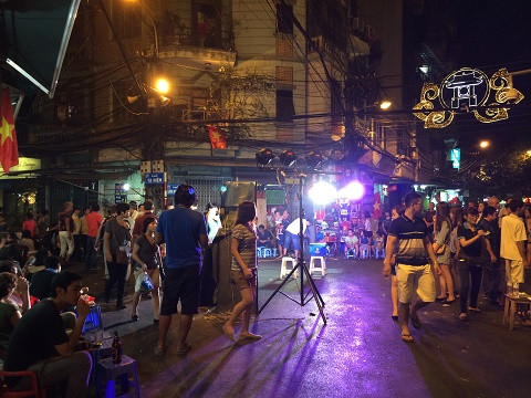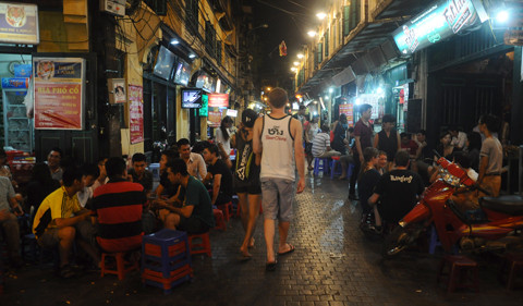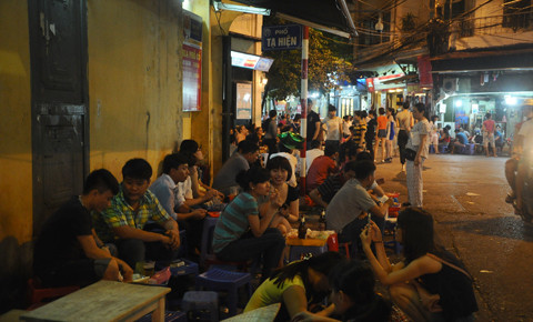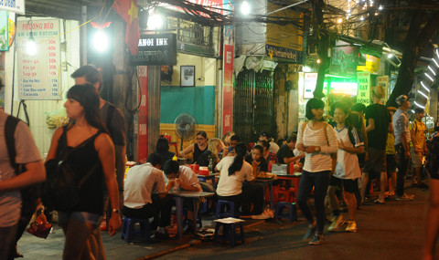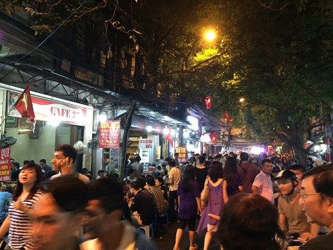 Bên trong các phố như Tạ Hiện, Lương Ngọc Quyến... hàng quán tràn từ vỉa hè xuống lòng đường, khách ngồi chật kín. Một ban nhạc chơi giữa ngã tư đường phố đã mang lại không khí sôi động cho khu vực phố đi bộ, nhiều du khách, đặc biệt là khách nước ngoài rất thích thú. Tuy nhiên, do hàng quán tràn xuống ngồi ở lòng đường, cộng thêm du khách quây xung quanh ban nhạc nên việc đi bộ ở khu vực này rất chật vật.