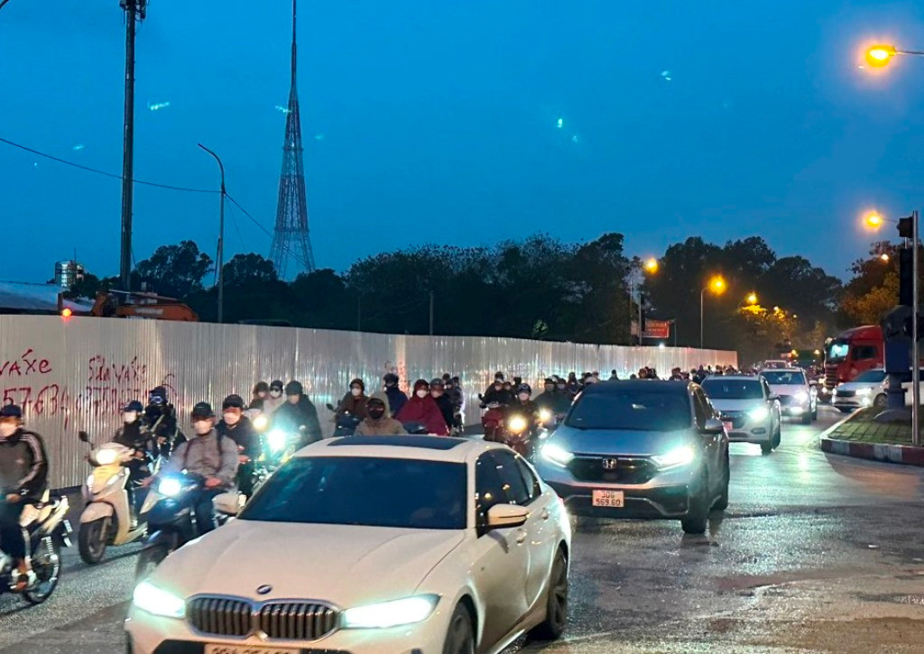| Tình trạng này đã gây ùn tắc giao thông kéo dài cho đại lộ Thăng Long đoạn qua công trường. |