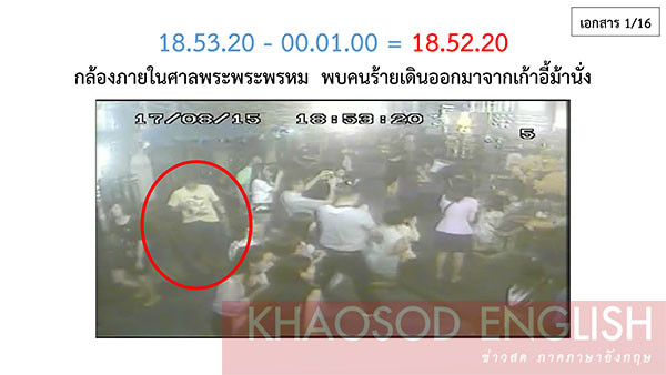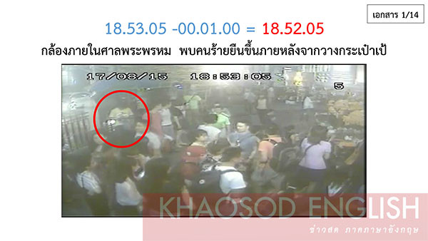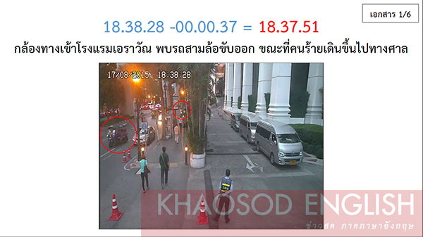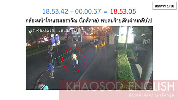 Theo hình tài liệu của cảnh sát bị rò rỉ với tờ Khaosod, nghi phạm được nhìn thấy bắt xe tuk tuk tới gần đền Erawan vào lúc 18h37 tối ngày 17/8. Ảnh: Khaosod.