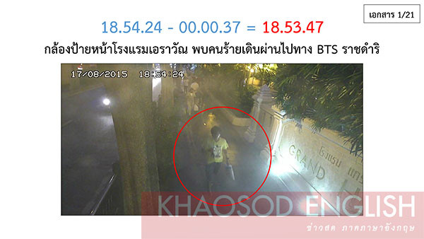 Một báo cáo của cảnh sát bao gồm các hình ảnh cho thấy diễn biến hành động của nghi phạm trước và sau vụ đánh bom tại Bangkok vào tối ngày 17/8 đã bị rò rỉ trên báo chí Thái Lan.