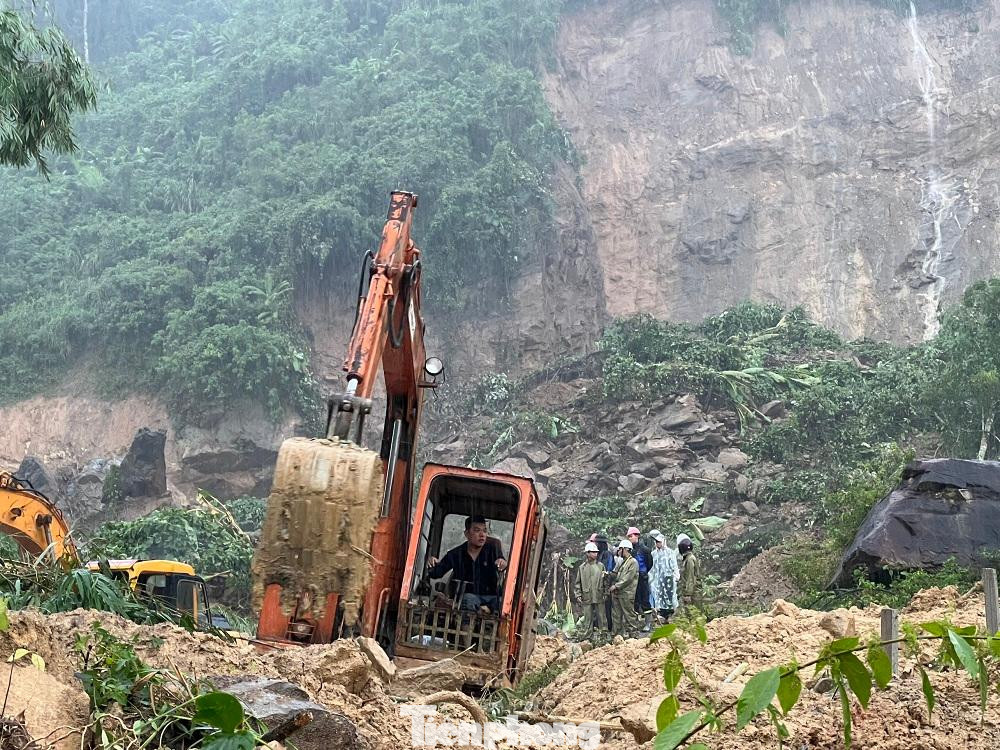 | Sáng 11/10, thời tiết tại khu vực sạt lở vẫn còn mưa rất lớn khiến công tác tiếp cận hiện trường gặp nhiều khó khăn. |