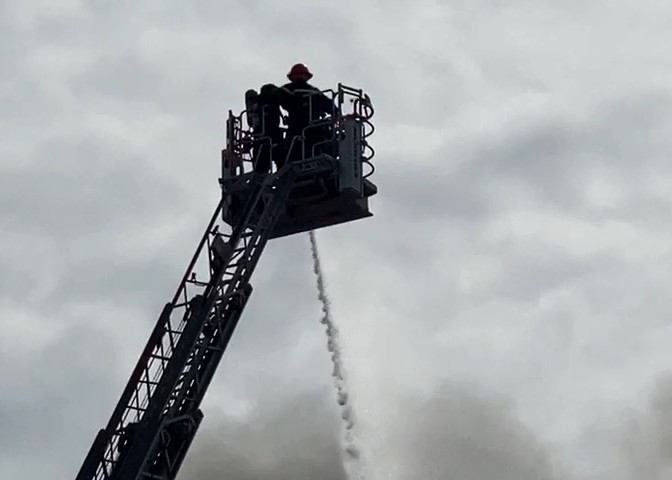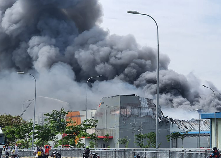 Ngọn lửa nhanh chóng bùng phát và bao phủ toàn bộ khu vực tầng trệt của công ty rồi lan lên trên. Cột khói từ vụ cháy bốc cao hàng trăm mét.