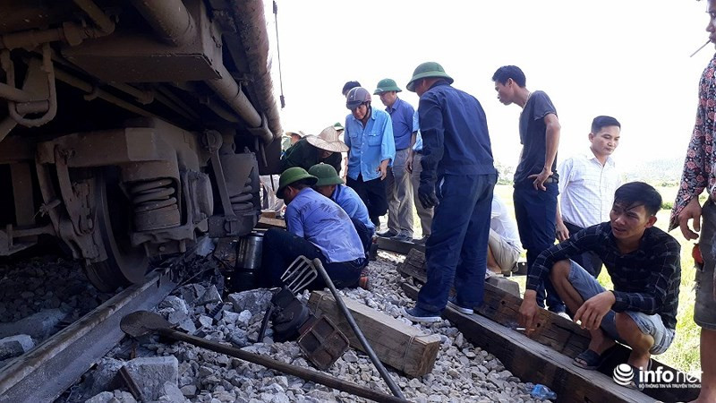 Ghi nhận tại hiện trường cho thấy, đến thời điểm hiện tại lực lượng chức năng đang tiến hành sửa chữa khắc phục đường ray.