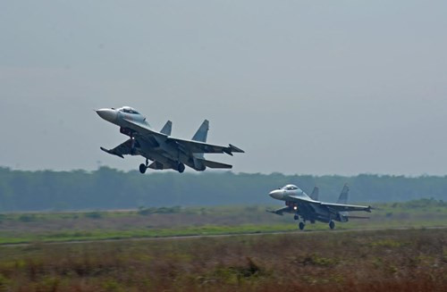 Biên đội Su-30MK2 thuộc Trung đoàn 935 xuất kích thực hiện nhiệm vụ