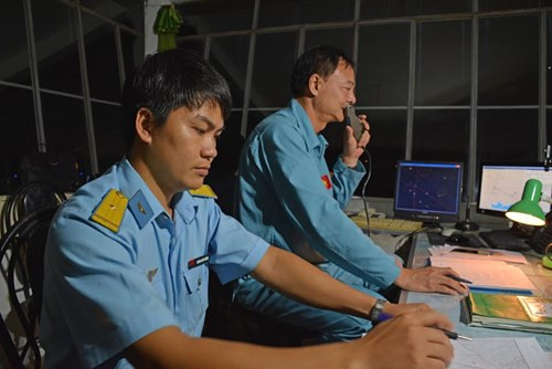 Chỉ huy Trung đoàn 935 điều hành ban bay đêm tại sân bay