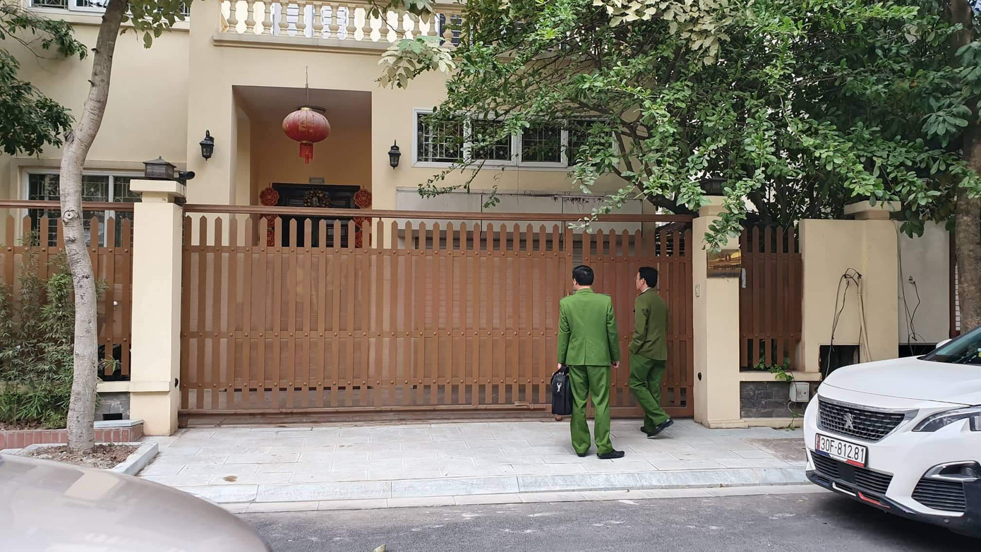 Chiều ngày 28/12, xe biển xanh cùng nhiều cán bộ công an đã có mặt tại một ngôi nhà tại số nhà 20 dãy 16A7 Làng Việt Kiều, Khu đô thị mới Mỗ Lao (quận Hà Đông, TP Hà Nội).