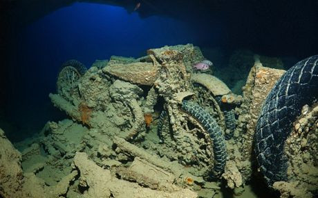 Những chiếc xe máy trong xác tàu SS Thistlegorm.