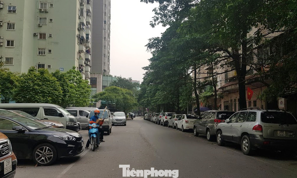 Đường Lê Văn Lương vốn đã chật hẹp, đông đúc nhưng phương tiện lại đỗ ngổn ngang dưới lòng đường, trên vỉa hè, đường nội bộ, thậm chí cả khu vườn hoa khiến khu đô thị vô cùng nhếch nhác.