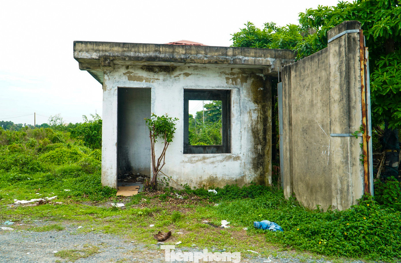 | Bên ngoài, lối vào depot bị tháo cửa, nhà bảo vệ hoang phế không người trông coi. |