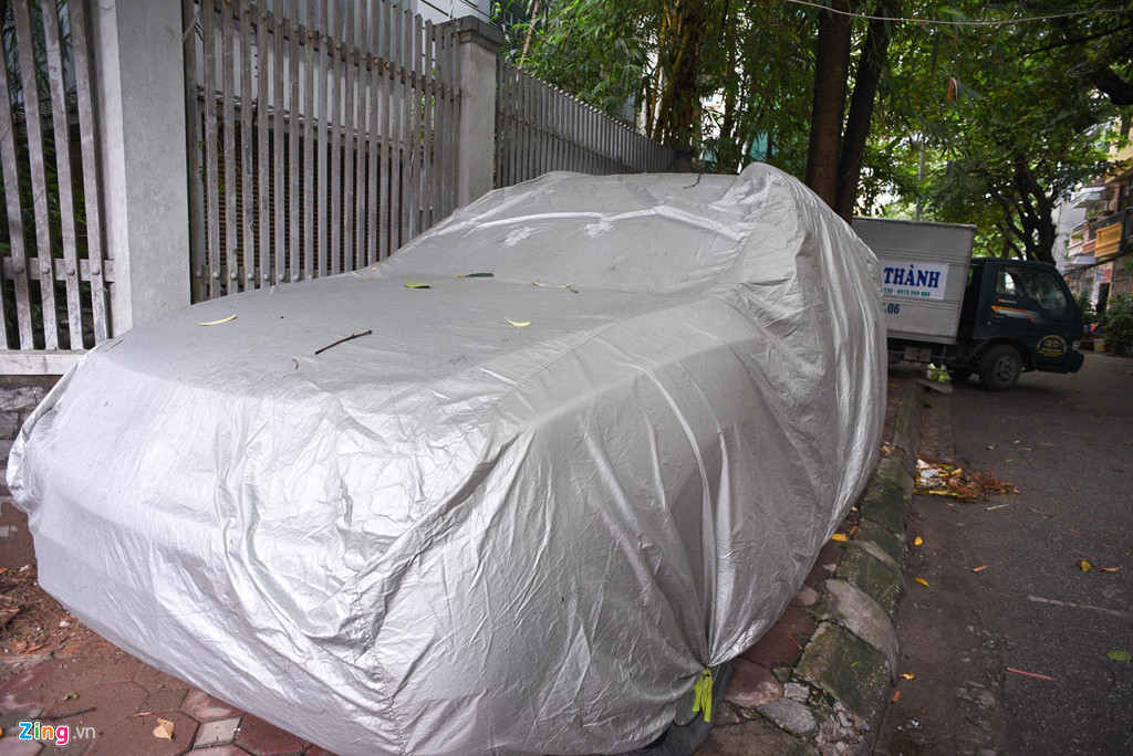 Một vài chiếc ôtô của người dân phủ bạt, đỗ ngoài đường đã nhiều ngày nay.