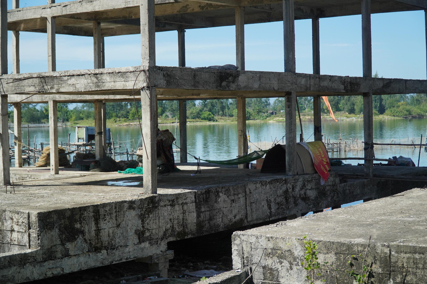 | Người dân tận dụng công trình bỏ hoang để làm chuồng nuôi dê, nơi tập kết ngư cụ. Ảnh: N.V |