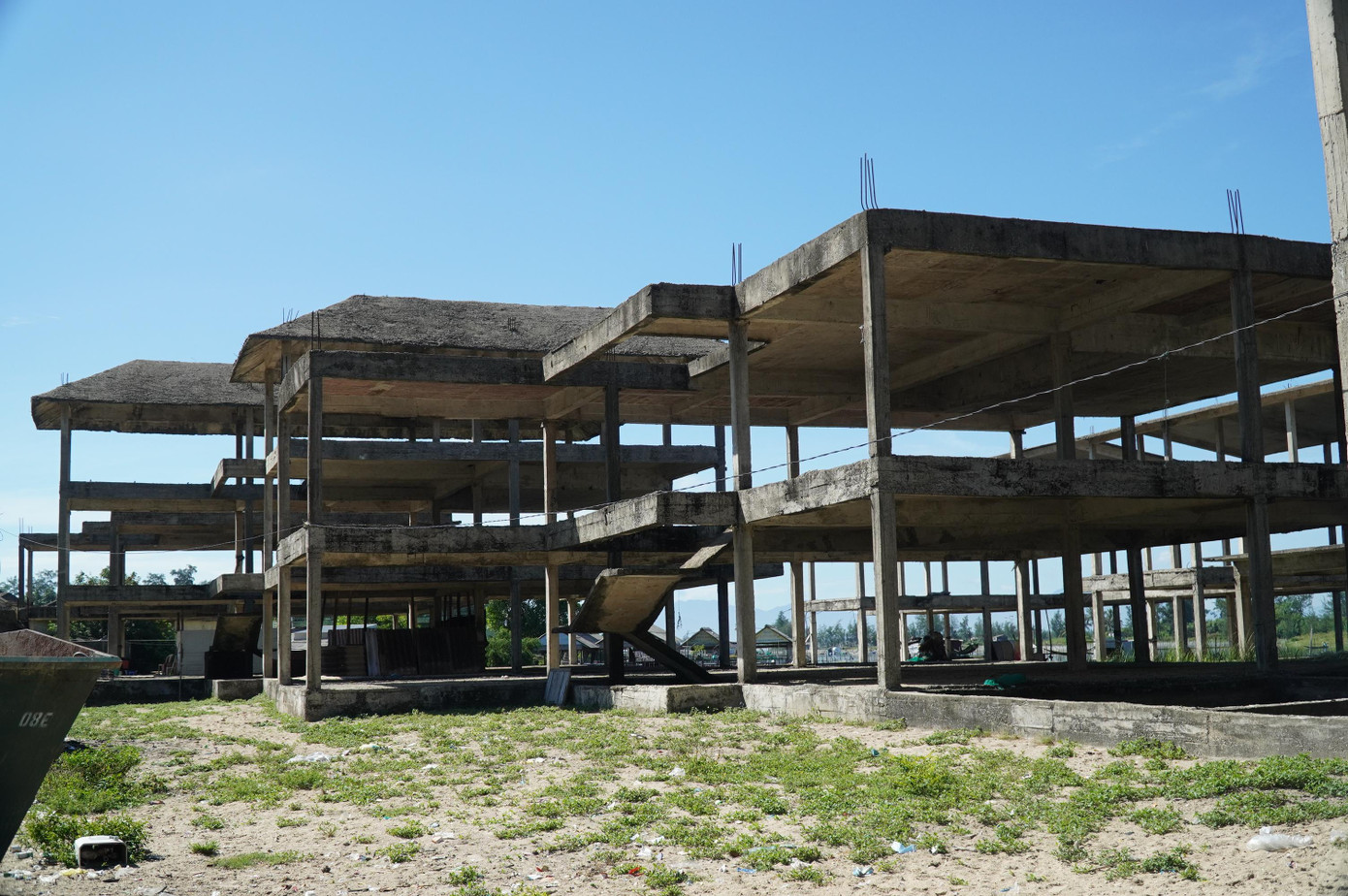 Ông Trần Trung (trú thôn Hòa Duân, Phú Thuận) băn khoăn: “Công trình đã ngưng xây dựng và rơi vào tình trạng dang dở cả chục năm nay, để lại những ngôi nhà rêu mốc đen sì, trông quái dị, phản cảm và hoang tàn”.