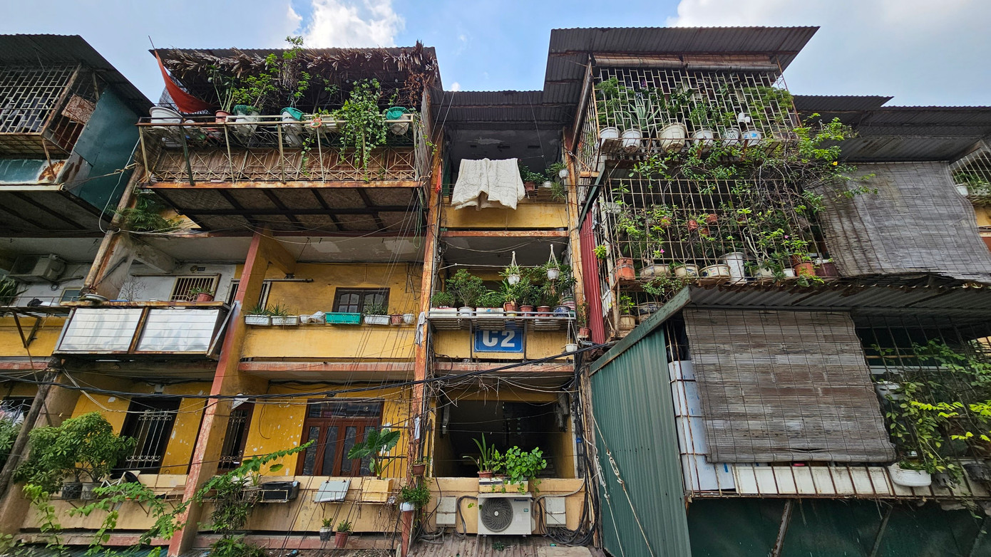 | Hình ảnh xuống cấp của khu tập thể Trung Tự. |