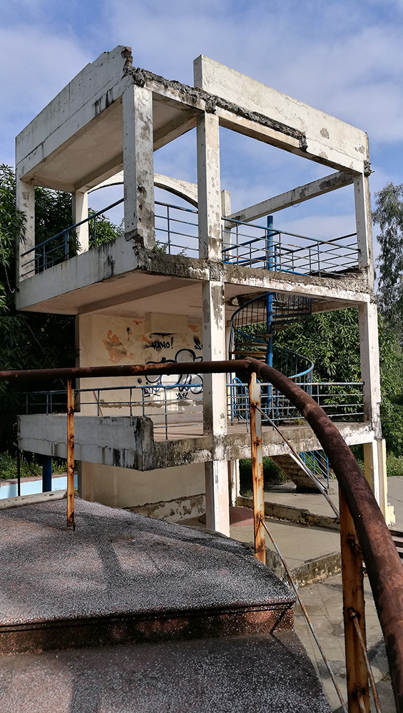 Gần đó là bể bơi đã nhiều năm nay bị bỏ hoang, xuống cấp.