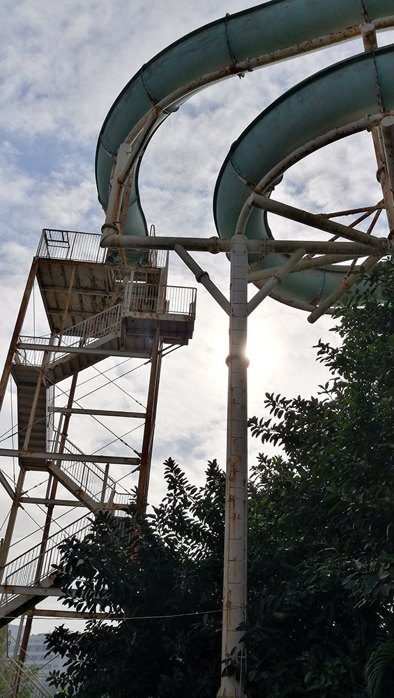 Khu vực ống trượt cao hàng chục mét cũng chung tình trạng "chờ sập".
