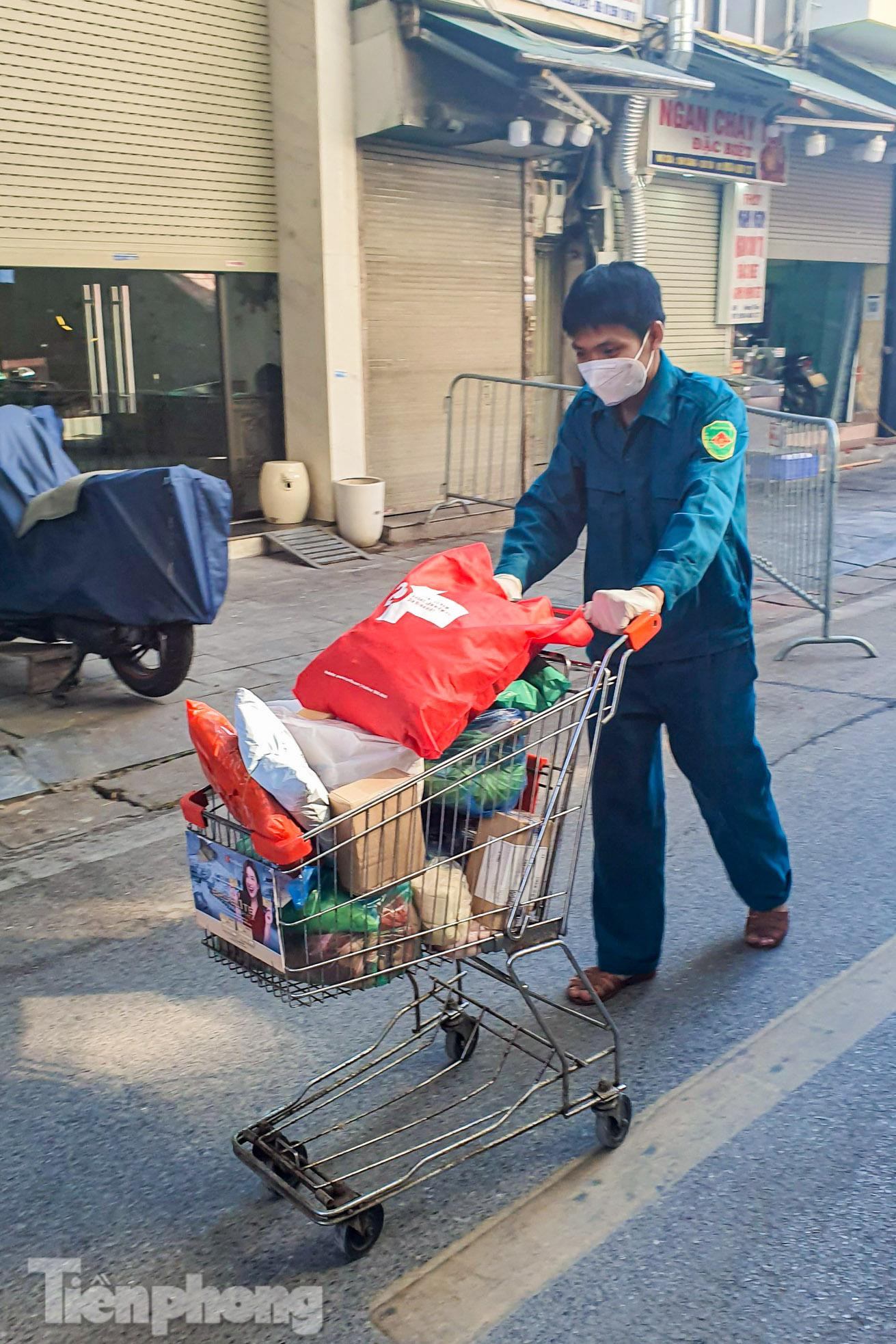 | Ngoài ra, tổ cung ứng phường Hàng Gai dùng xe điện để chuyển lương thực, thực phẩm đến từng hộ gia đình trong khu cách ly y tế. |