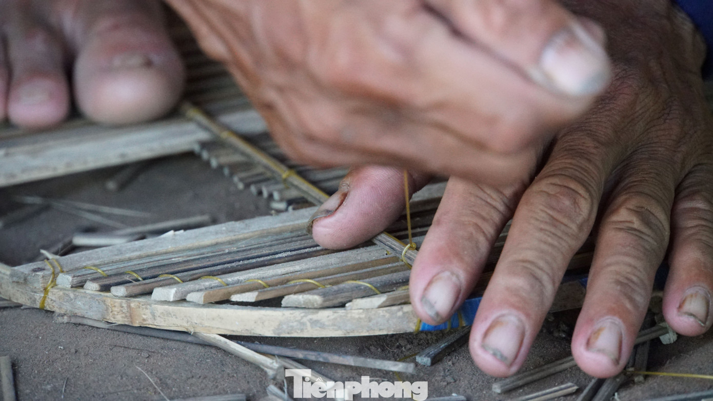 | Người thợ tỉ mỉ làm lọp cá linh. Ảnh: Hòa Hội. |
