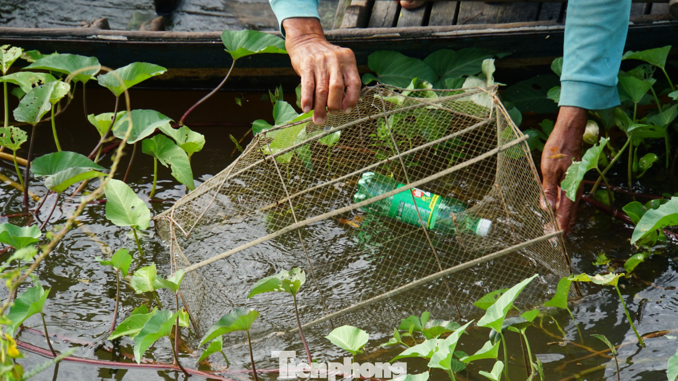 | Người dân mang lọp đi đặt ngoài đồng. Ảnh: Hòa Hội. |
