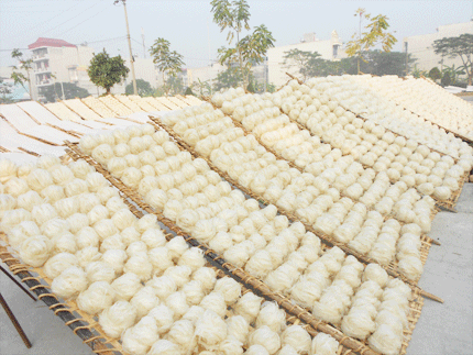 Cả một vùng rộng lớn ở đây được bao phủ bởi những mảng màu trắng, cùng nhiều màu sắc khác đan xen, tạo nên một bức tranh bình yên, no ấm và giàu truyền thống văn hoá. Khi những tia nắng của một ngày mới còn le lói phía chân trời xa thì những phên bánh đa vừa được tráng xong, đưa ra khỏi lò vẫn còn nghi ngút khói, được mọi người vác, bưng, bê và chở bằng xe ra phơi trắng cả những con đường, ngõ xóm.